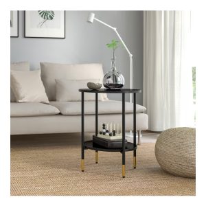 New Mark Impex Side Table, 2 Tiers, Round Tray Table