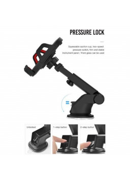- Se adapta a teléfonos de 4" a 6"- Ventosa de agarre fuerte- Admite multitud de posiciones- Botones de bloqueo y desbloqueo del dispositivo