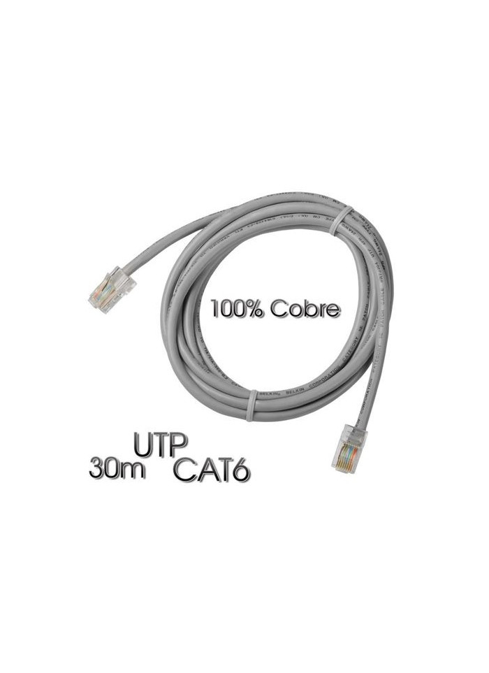 • Cable de red latiguillo Categoria 6 UTP con conector tipo RJ45 en ambos extremos.• Material 100% cobre• Longitud 30 Metros• Color Gris Claro