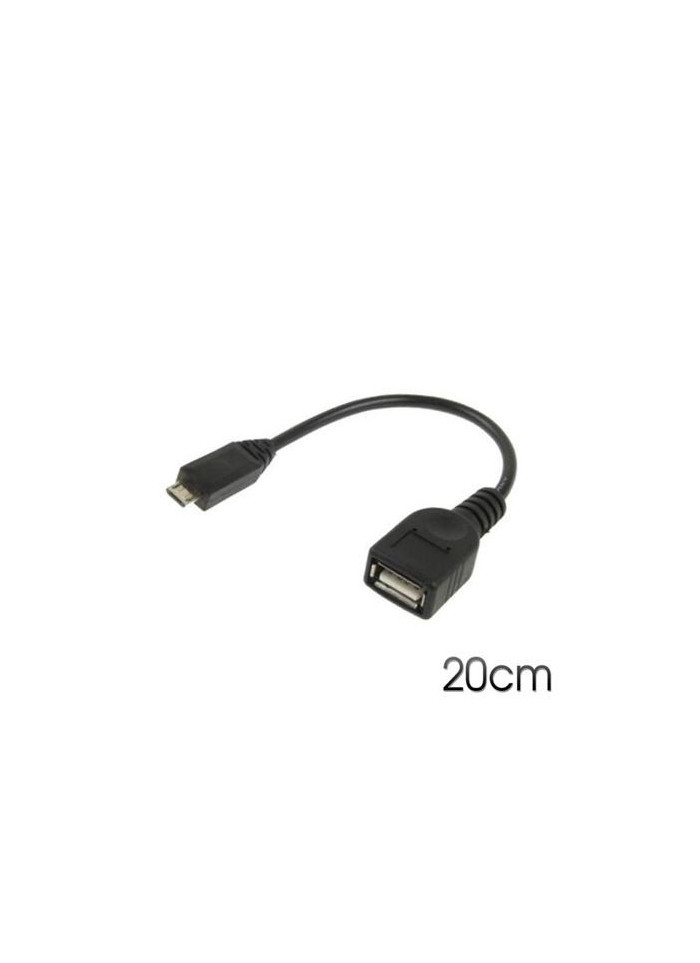 • Cable USB 2.0 OTG con conector tipo Micro USB A macho en un extremo y tipo USB A hembra en el otro.